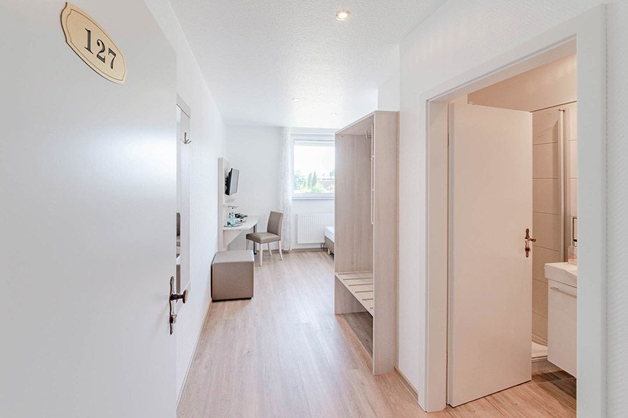 Alle Doppelzimmer oder Einzelzimmer sind mit Dusche / Bad / WC / TV / Telefon ausgestattet.
